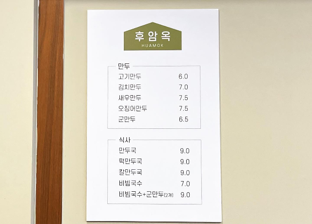 후암옥의 메뉴는 만두가 메인으로해서 고기만두, 김치만두, 새우만두, 오징어만두, 군만두가 있고 식사로 만두국, 떡만두국, 칼만두국, 비빔국수, 비빔국수+군만두(2개)가 있습니다. 새해가 다가오기에 저는 떡만두국으로 주문하였습니다.