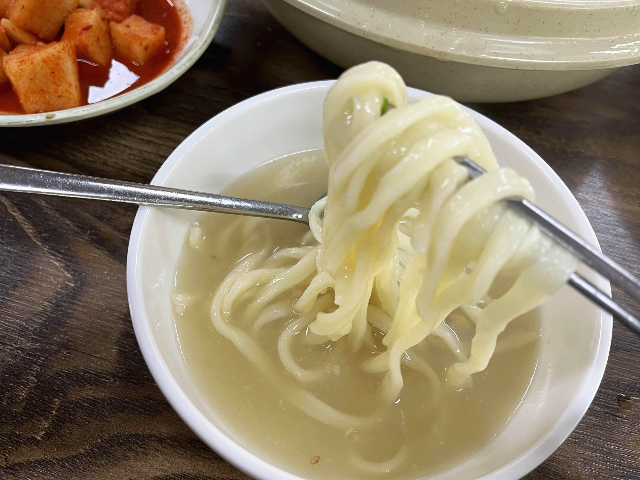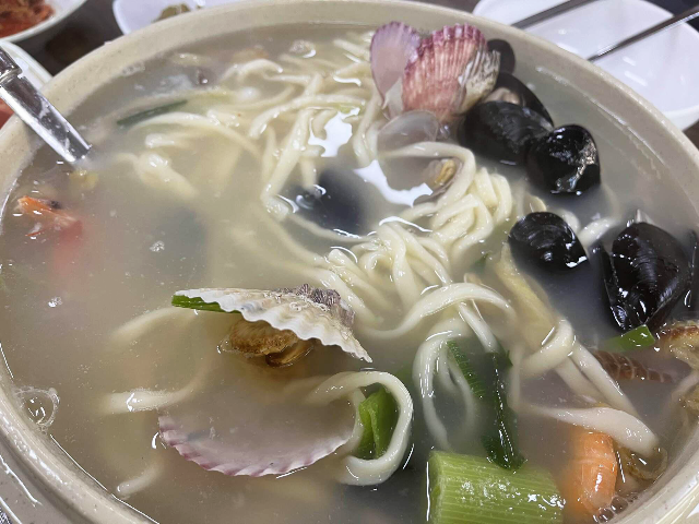 면도 먹어보았습니다. 생각보다 불지않고 쫄깃한게 맛있었습니다. 국물은 해물 육수의 맛보다 황태의 진한 국물 맛이 느껴져서 저에게는 조금 아쉬웠습니다. 황태의 맛보다 다시마 베이스의 조개 육수가 더욱 시원하고 좋을 것 같았는데 황태의 맛이 너무 강하게 느껴졌습니다.