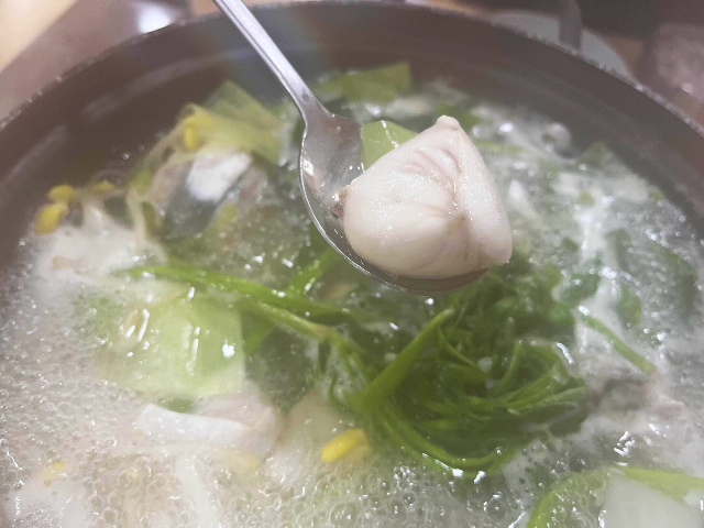 까치복과 참복의 맛을 구분할 정도 입맛은 아니지만 복지리탕을 조금 먹어본 입맛으로는 살이 쫄깃쫄깃하고 퍽퍽하지 않아서 상당히 맛있었습니다. 너무 맛있어서 그런지 양이 조금 부족한 느낌이었습니다.