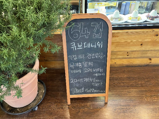 64겹 큐브데니쉬 말고도 커피와 함께 브런치로 먹을 수 있는 음식들이 다양하게 있었습니다. 64겹 큐브 데니쉬와 음료를 주문하고 자리를 둘러보았습니다.
