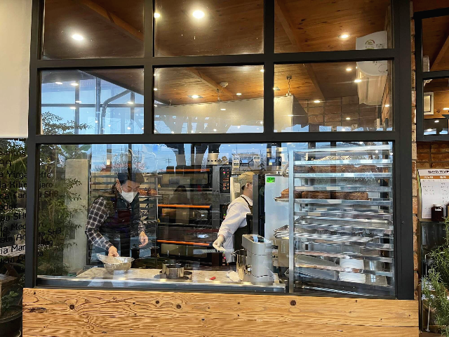 카페 입구 들어서자마자 바로 보이는 곳이 있습니다. 빵을 만드는 주방인데요. 이곳에 아주 유명한 빵이 있다고 합니다. 사장님께서 직접 제빵사와 같이 있는 모습이 빵에 대해서 굉장히 신경을 많이 쓰시는 것 같았습니다.
