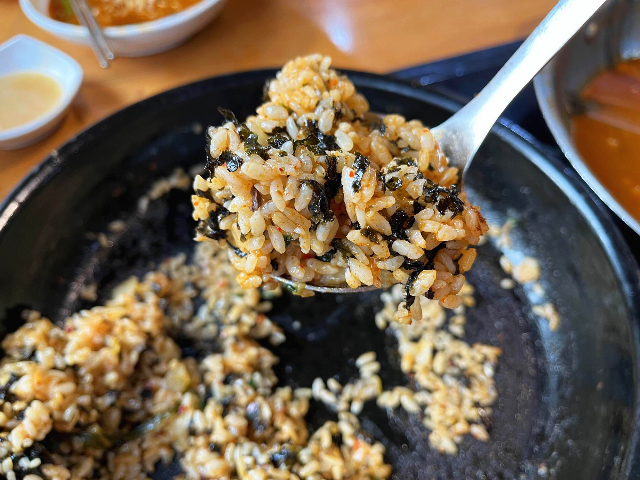 꼬슬꼬슬하게 맛있게 나왔습니다. 맛은 김치볶음밥에 가깝고 감자탕 볶음밥이라고 하기에는 감자탕 맛이 거의 없었습니다. 그래도 남은 국물과 함께 먹어서 맛있게 먹을 수 있었습니다.