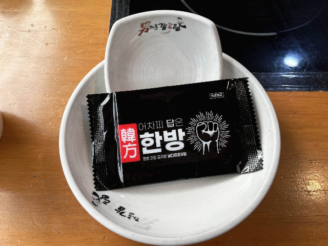 남다른 감자탕이라는 이름이 남다른에 남과 감자탕에 자, 남자에서 나온 이름 같습니다. 물티슈의 한방은 남자의 한방과 약초로 만든 육수의 이중적인 의미를 주고 있는 것 같네요.