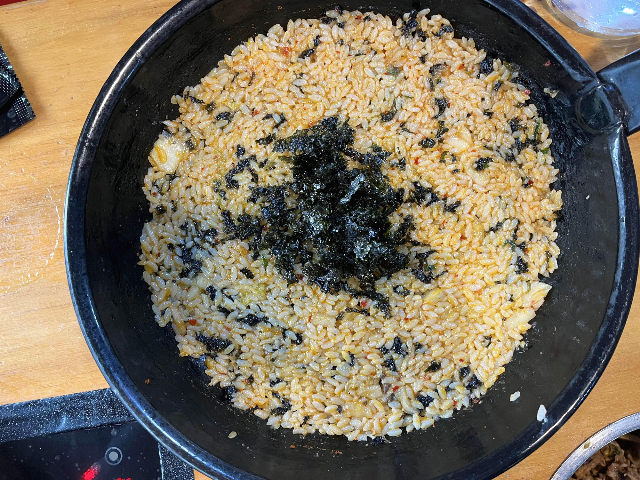 라면사리 먹을 때 볶음밥도 주문했는데요. 남은 육수 국자로 몇 번 퍼가고 나온 볶음밥입니다.