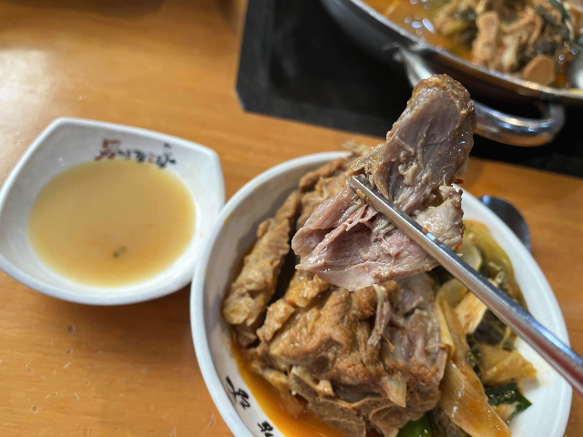 살집이 두둑하게 붙은 뼈와 부드러운 우거지가 맛있어보였습니다. 국내산 돼지뼈를 사용하고 육수는 한방육수를 사용한다고 합니다.