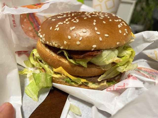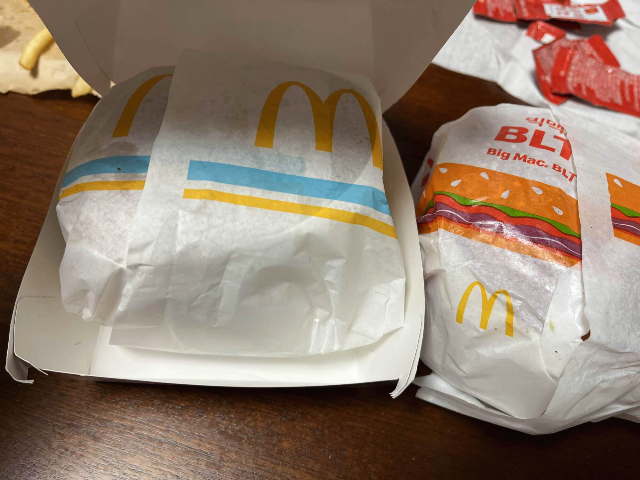 빅맥BLT를 먹어보았습니다. 생각보다 베이컨의 맛이 잘 안 느껴졌습니다. 짭짤하게 느껴질 줄 알았는데 다른 재료들과 같이 있다보니 생각보다 희미한 맛이었습니다.