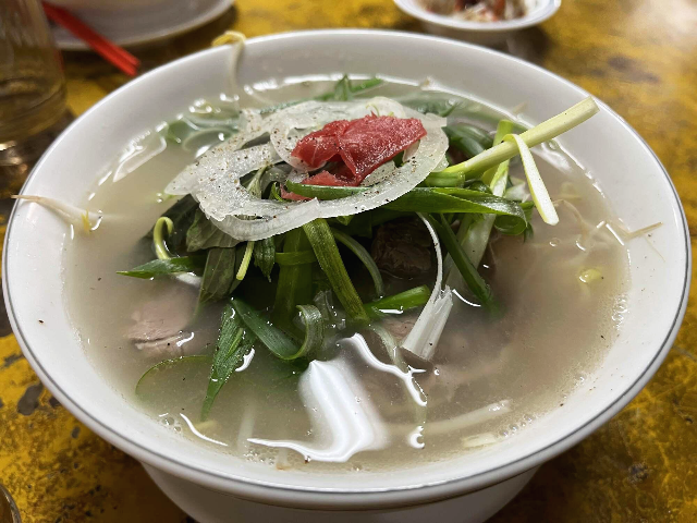 위에 올려진 대파와 양파 등 기본 채소가 맛의 풍미를 높여주는 것 같았습니다. 고수는 따로 들어있지 않고 이야기하면 가져다준다고 합니다. 사골 국물의 느끼함은 없고 구수하면서 단짠의 맛과 쌀국수의 향신료 풍미가 먹을수록 입맛을 자극하고 당기게 하였습니다.