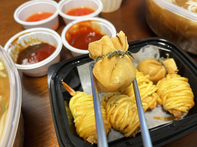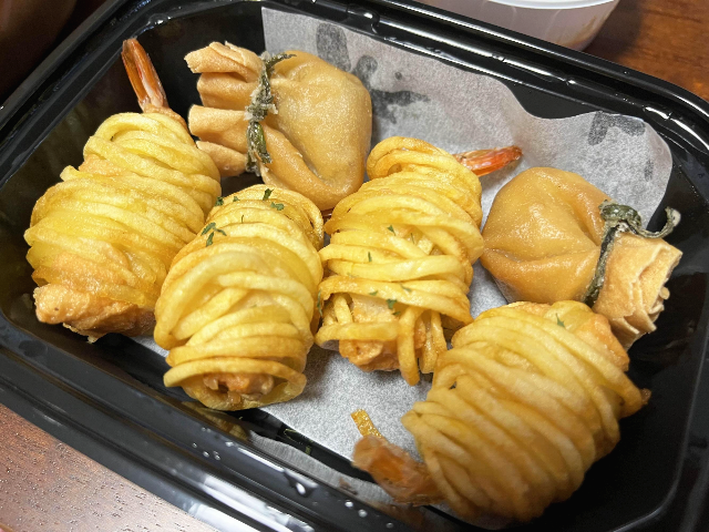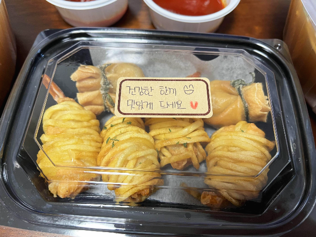 감자말이새우입니다. 감자가 끊기지않고 잘 감겨서 튀겨진 것도 신기하고 BHC포테킹이 생각나는 모양입니다. 개인적으로 BHC포테킹은 별로였지만 감자말이새우는 정말 맛있습니다.
