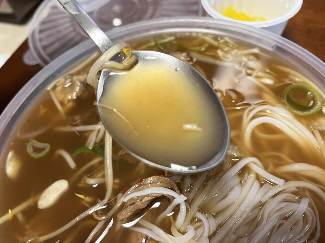 국물부터 먹어보았습니다. 담백하고 진한 쌀국수 국물맛이 진국이었습니다. 배달 오는 시간 때문에 엄청 뜨겁지 않았지만 먹기 좋은 온도로 괜찮았습니다.