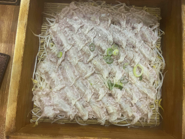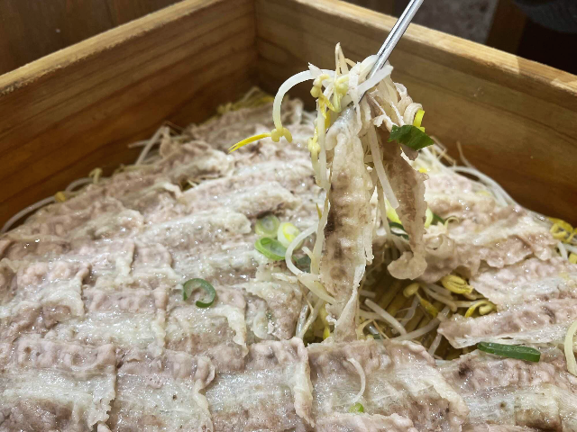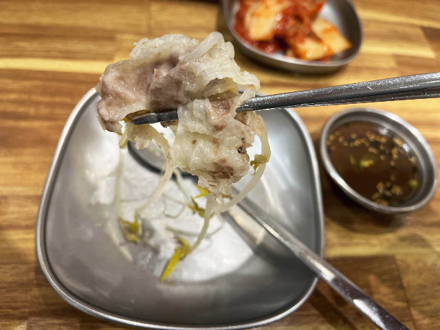 얇디얇고얇은 우삼겹과 촘촘히 깔린 숙주가 맛있게 잘 익었습니다.