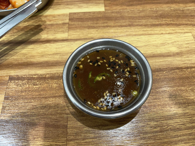 유자향이 가득한 소스도 찍어서 먹어보았습니다. 새콤하면서 달콤한 맛이 우삼겹 맛의 풍미를 더해줘서 맛있었습니다.