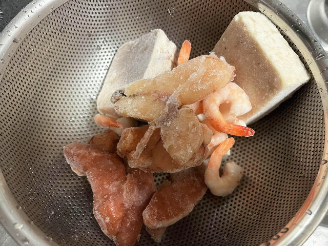 1. 냉동 알모둠을 흐르는 물에 살살 씻어 준비해 주세요.