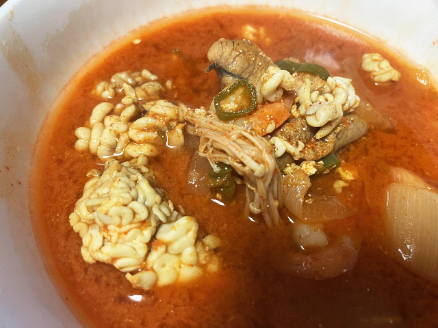 팽이버섯과 양파, 고추 등 채소도 여럿 들어있고 조금 더 추가하면 완벽한 알탕으로 먹을 수 있을 것 같아 보였습니다. 아내 분과 같이 먹어서 양이 조금 부족하기도 했지만 혼자 먹기에는 조금 많을 수도 있을 것 같았습니다.