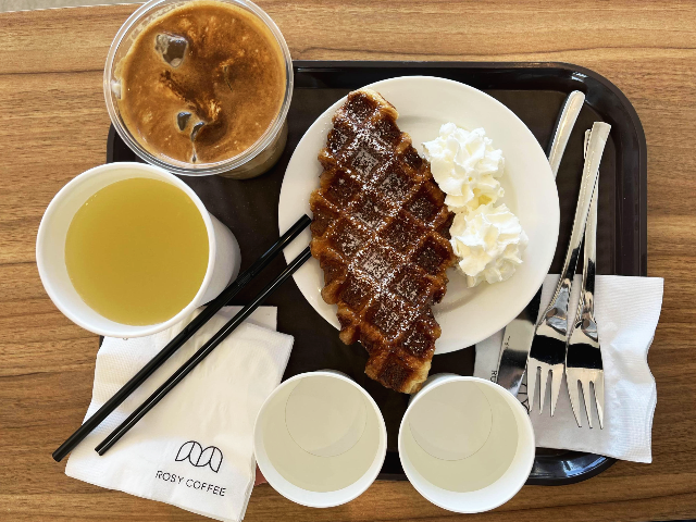 이제는 카페에서 빵은 기본으로 있어야하는 것 같은데요. 맛있어 보이는 빵들이 많았지만 점심을 먹은 상태였고 이곳에서 가장 유명한 빵이 크로플이라고해서 크로플만 하나 먹기로 하였습니다.