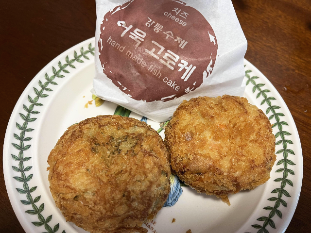 보통 고로케라고 생각했던 강릉 어묵고로케의 맛은 상상 이상으로 맛있었습니다. 5개만 사온 것이 후회될 정도로 괜찮았습니다. 이제 그냥 고로케는 맛이 없게 느껴질 것 같네요. 맛있게 잘 먹었습니다.