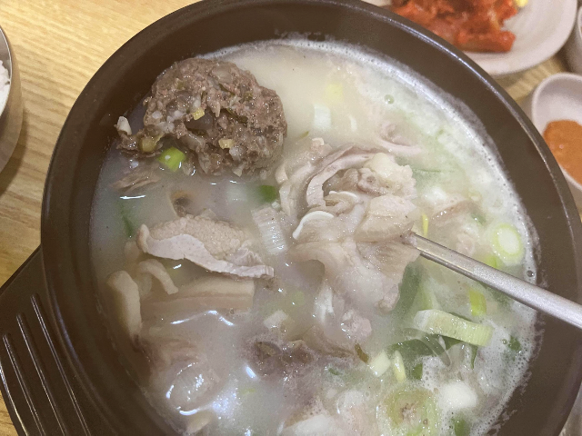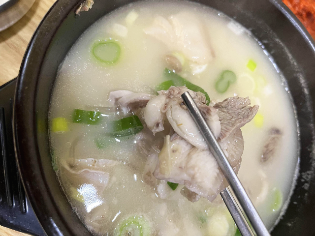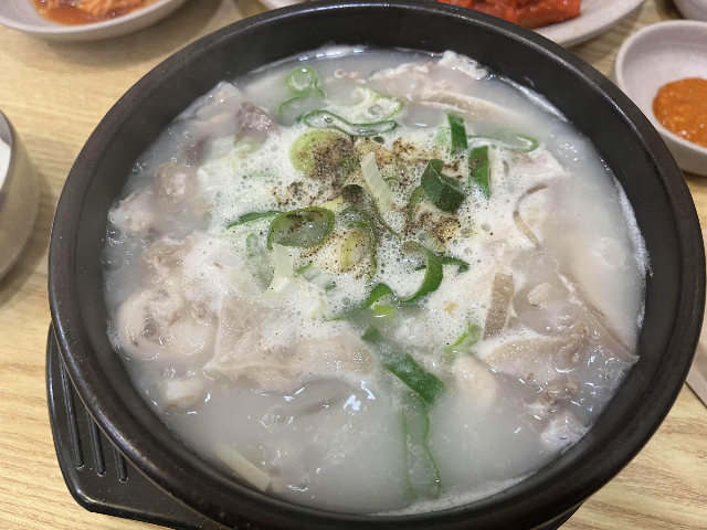 뽀얀 국물에 뽀얀 고기들이 먹기 좋게 썰어져있고 잡내 없이 깔끔한 고기가 쫄깃하면서 담백하게 맛있었습니다.