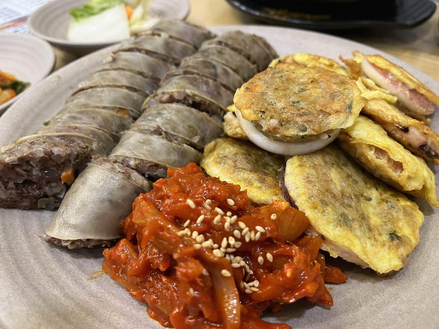 가장 먹고싶었던 오징어순대를 명태회와 함께 먹어보았습니다. 적당한 온도의 오징어순대가 쫄깃쫄깃하고 너무 맛있었습니다. 명태회도 매콤하면서 달달한 맛이 씹을수록 육즙이 나와서 맛있게 먹었습니다.