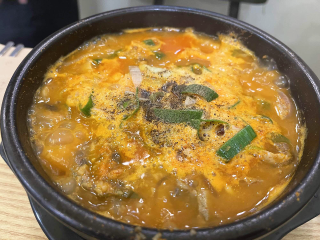 얼큰아바이순대국밥도 한입 먹어보았는데요. 매콤하면서 담백한 맛이 속풀이로 좋을 것 같았습니다. 순대국보다는 해장국 느낌이 많이 났습니다.