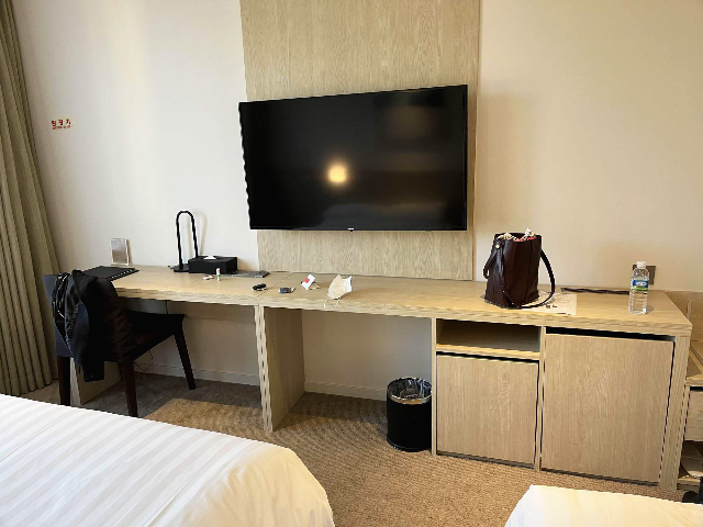 적당한 티비와 비즈니스 테이블 겸 화장대로 사용할 수 있는 책상과 의자