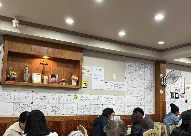 목요일 11시쯤으로 평일이었지만 20분정도 웨이팅 후에 입장하게 되었습니다. 가게 안 벽면에는 유명인들의 싸인으로 가득 메워져 있고 방송에서도 소개가 되었던 가게라서 인기가 유지되는 것 같아 보였습니다.