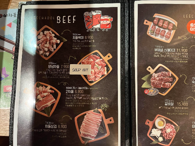 차돌박이를 먹으러 왔으니 먼저 차돌박이 2인분을 주문하고