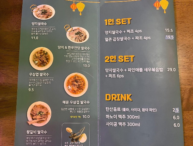 쌀국수 종류도 다양하게 일반 양지쌀국수와 우삼겹 쌀국수, 왕갈비 쌀국수까지 오마이포만의 메뉴가 있어서 신기했습니다. 세트 메뉴도 있어서 저희는 2인 SET로 쌀국수와 볶음밥 그리고 짜조까지 먹어보기로 하였습니다.