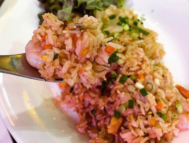 큼지막한 새우와 파인애플의 상큼한 맛이 볶음밥과 잘 어우러졌습니다. 다소 아쉬운 것은 담백한 볶음밥이라서 기름에 덜 볶아지고 밥에 수분이 남아 밥알 자체가 꼬들하지 않은 것이 아쉬웠습니다. 동남아 쌀 특징으로 날림 밥이었으면 더 맛있었을 것 같았습니다.