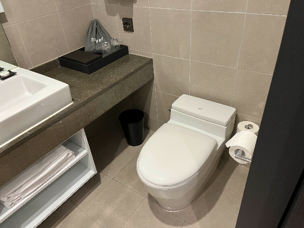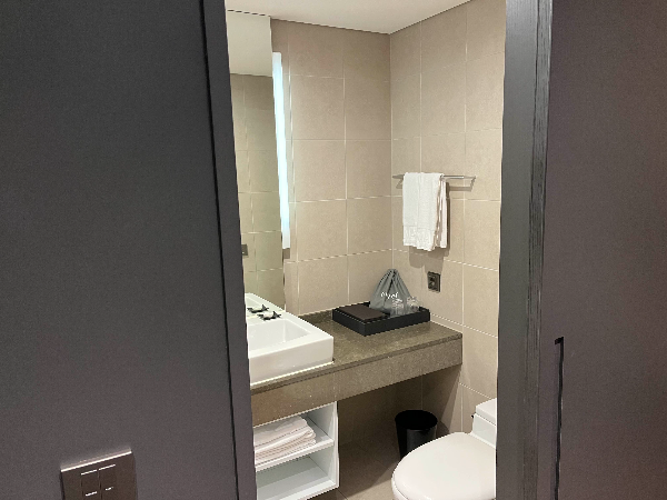 정면으로는 세면대가 있고 오른쪽으로는 변기가 있습니다. 비데가 없는게 조금 아쉬웠습니다.