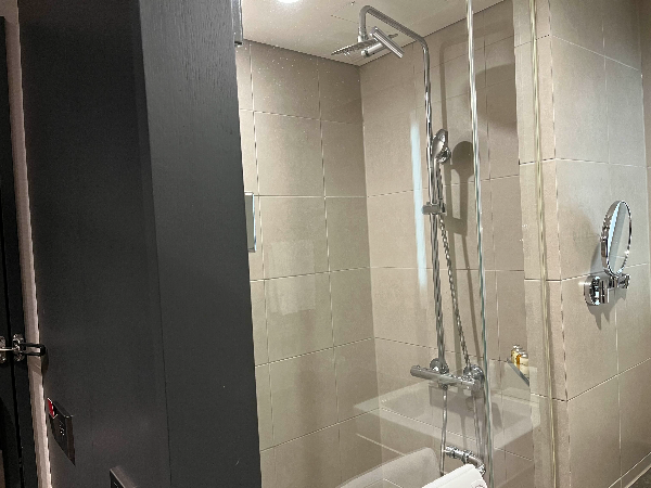 욕조는 없고 샤워부스가 설치되어 있습니다.