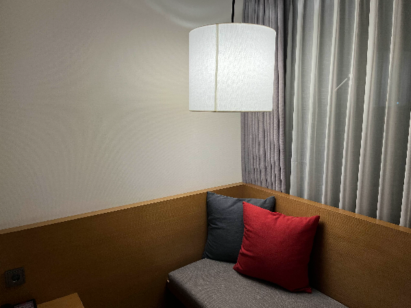 예쁜 조명 아래 쇼파가 있어서 좋았습니다. 숙소에 있다보면 침대만 있고 쇼파가 없는 곳이 많은데요. 침대에서만 쉬다보면 조금 불편한 점이 있는데 쇼파가 있어서 좋았습니다.