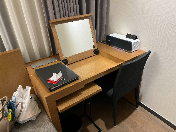 쇼파 옆으로는 비지니스 테이블 겸 화장대로 쓸 수 있는 책상과 의자가 있습니다.