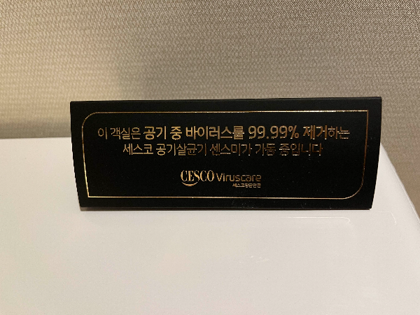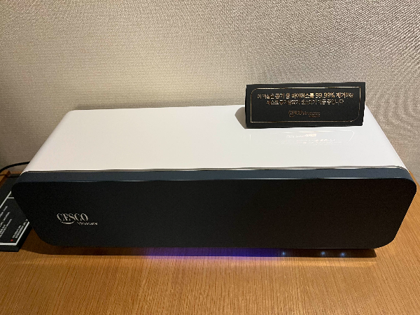 책상 테이블 위에는 세스코 공기살균기가 있었습니다.
