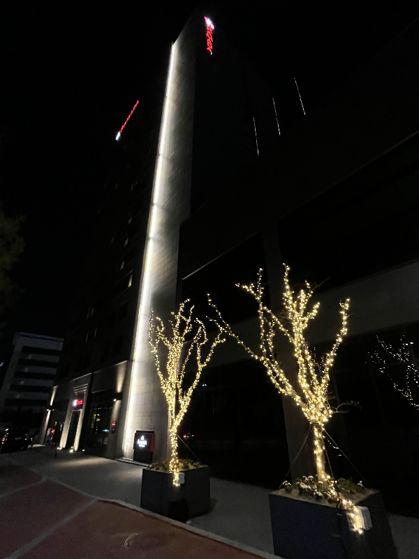 금요일 퇴근 후 도착하여서 늦은 밤이 되었습니다. 기차 군산역에서 호텔까지는 택시로 20분정도 소요되고 택시비는 1만원정도 나왔는데요. 택시 기사님께서 군산에 대해 친절히 설명도 해주시고 좋은 기분으로 맞이해주셨습니다. 군산 라마다호텔 앞은 아직도 크리스마스 분위기로 보였습니다. 크리스마스 지난지가 한참인데 뭘까라고 생각했지만 군산은 8월의 크리스마스 도시니까 그런가보다 했습니다.