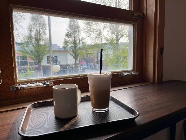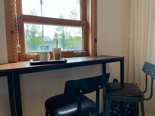 다다미방의 좌식에도 앉아보았는데 밖이 보이는 창가에 앉고 싶어서 테이블의자가 있는 독서쉼터에 자리 잡았습니다.