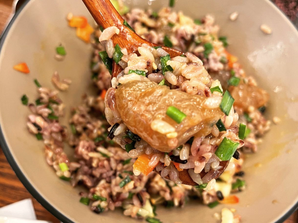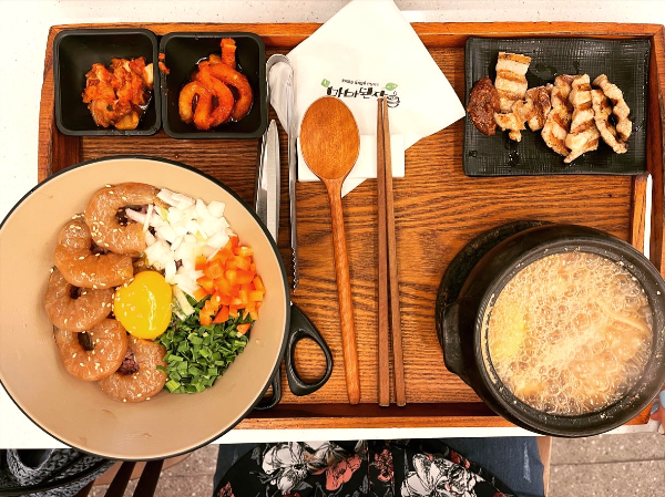 간장 새우장 덮밥도 한입 먹어보았는데요. 많이 짜지 않게 적당한 간으로 만들어졌지만 된장찌개와 먹기에는 짠맛에 짠맛이 조금 과하게 느껴질 수도 있을 것 같았습니다.