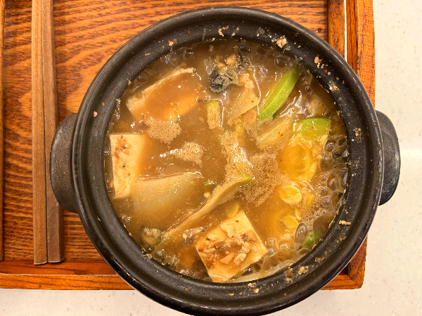 된장찌개의 재료들이 아낌없이 들어가 있었습니다. 우렁이 꽤나 많았고 호박과 두부, 버섯, 양파 등 재료들이 큼지막히 들어있어서 좋았고 집 된장찌개처럼 진하고 구수한 맛이 제대로 느껴졌습니다.