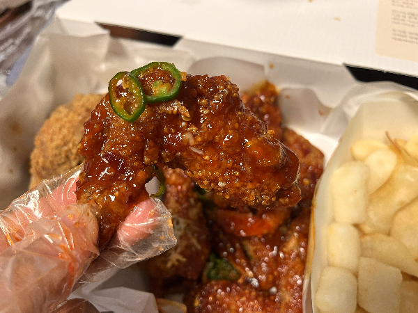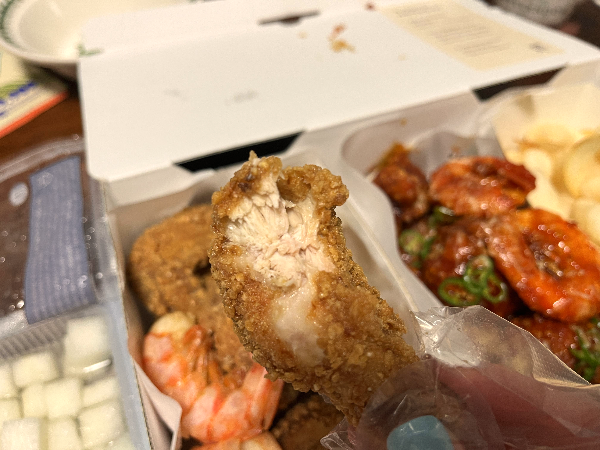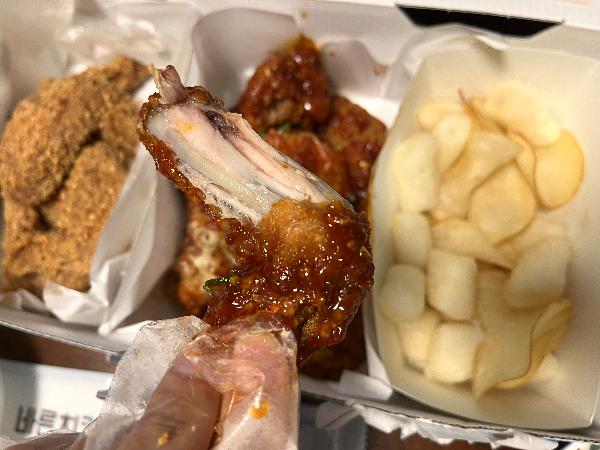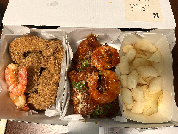 반반바른치킨 새우튀김과 함께 잘 먹었습니다. 큼직한 새우도 맛있었고 양념치킨의 양념이 없어서 떡튀김과 같이 못 먹은 게 아쉬웠습니다. 치킨도 조금 컸으면 좋겠는데 요즘은 작은 닭이 대세여서 어쩔 수 없을 것 같네요. 맛있게 잘 먹었습니다.