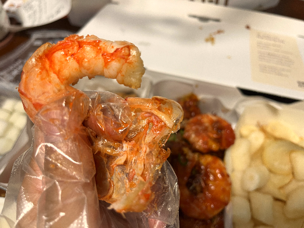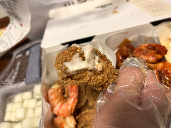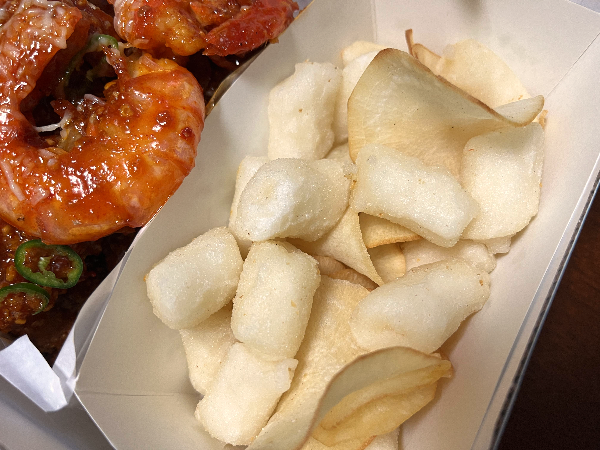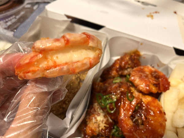 바른치킨에는 큼지막한 새우가 2개 들어있고 껍질도 반 정도 손질이 되어 있어서 먹기 편했습니다.