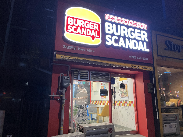 출퇴근길에 지나던 버거스캔들인데요. 지나다니며 맡았던 기름 냄새가 저를 이곳으로 이끌리게 하였습니다. 집에서 멀지 않고 요즘 배달비가 상당히 비싸져서 주문 후 직접 방문해서 가져오게 되었습니다.