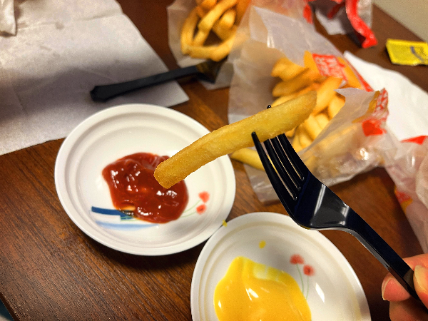 감자튀김은 과자처럼 바삭한 맛이 났는데요. 마치 자가비 과자를 먹는 듯하게 튀겨져서 새로운 감자튀김의 맛이었습니다. 더 튀겨졌으면 바삭하기만 했을 텐데요. 적당한 시간에 잘 된 것 같습니다.