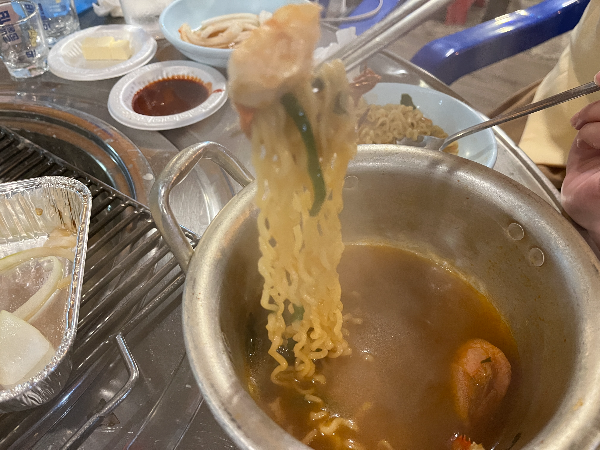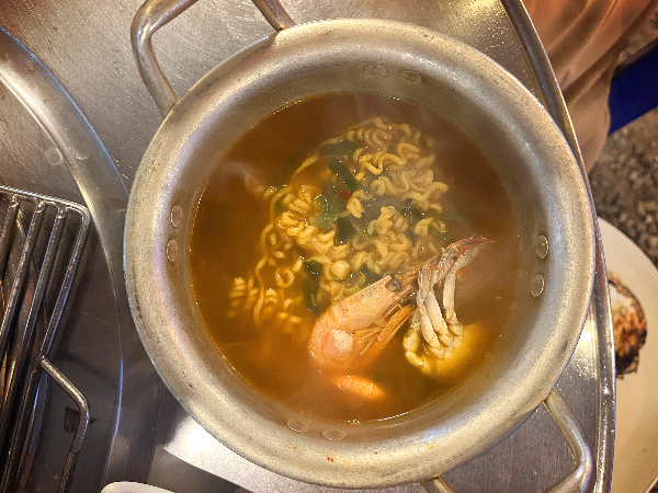 이곳 해운대구이에서는 1인 1라면을 할 수 있을정도로 가격도 괜찮고 맛도 좋았습니다. 라면은 역시 양은냄비에 구공탄입니다.