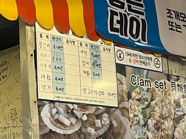 메뉴 밑에 원산지도 한번 확인해보았습니다. 일본산 가리비가 조금 거슬렸지만 개의치 않고 먹기로 하였습니다.