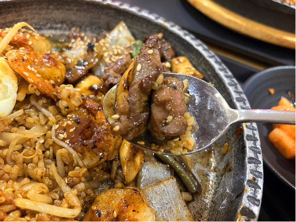 깐풍통새우도 먹어보았습니다. 매콤한 양념소스에 통통한 새우살이 간장베이스의 볶음밥과 가장 잘 어울렸던 것 같습니다. 큐브스테이크의 소스는 볶음밥 소스와 비슷한 계열이라서 하나의 맛이 느껴졌지만 깐풍통새우는 간장베이스의 볶음밥에 매콤한 맛이 더해져서 느끼함도 잡아주고 맛이 확 살아나는 느낌이었습니다.