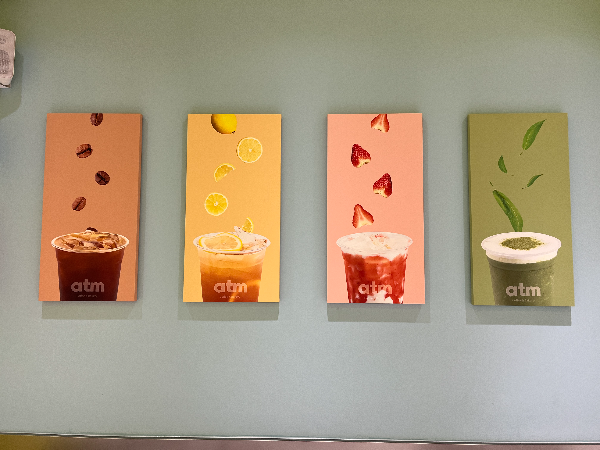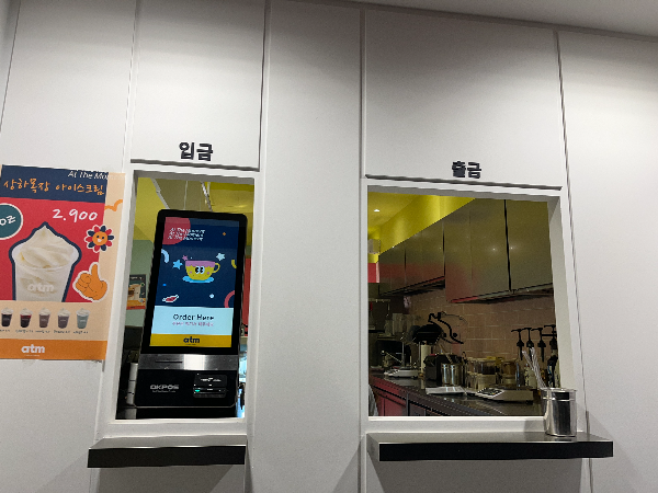 atm 이름처럼 입금, 출금으로 주문 키오스크를 재미있게 꾸며놓았습니다. 입금으로 주문하고 출금으로 테이크아웃 음료를 받습니다.