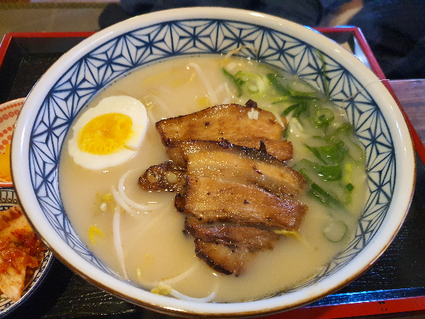 돈코츠라멘입니다. 고명으로 올려진 차슈 고기가 너무나 맛있었습니다. 양념이 잘 재어진 느낌이었습니다. 국물은 그냥 평범한 돈코츠라멘으로 괜찮았습니다.
