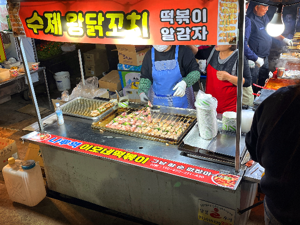 수제 왕닭꼬치와 나루역 이모네떡볶이 그리고 알감자입니다. 닭꼬치 못지않게 떡볶이도 잘 팔리고 있었는데요.