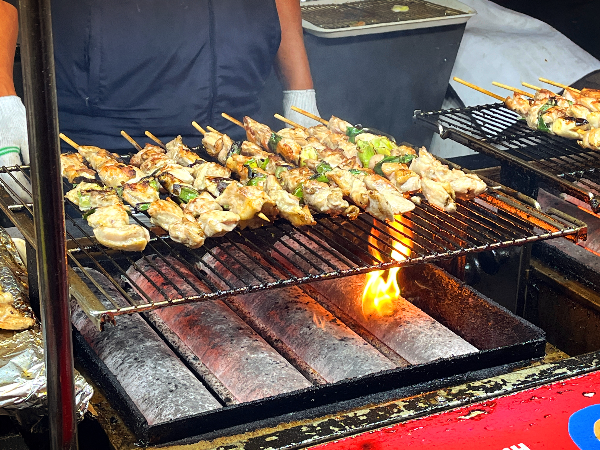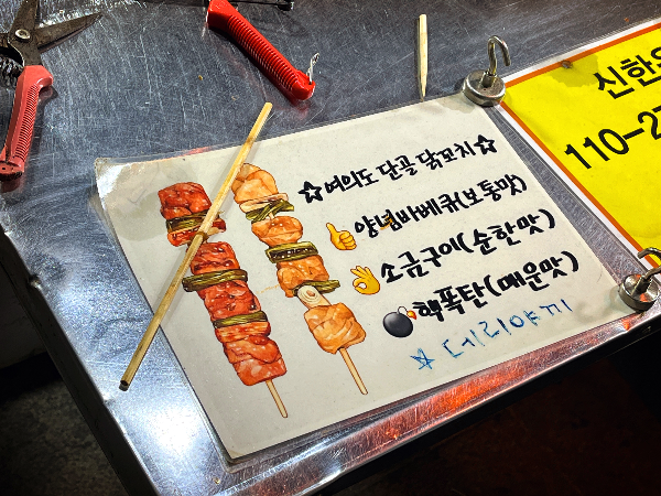 이곳에서는 초벌한 닭꼬치를 직화로 구워주고 있었습니다. 숯불 직화는 아니어서 조금 찝찝했지만 어쩔 수 없었습니다. 닭꼬치가 먹고 싶었습니다.