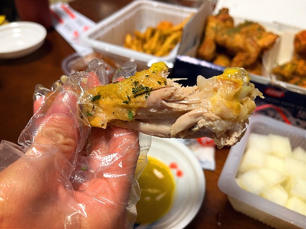 먹어보았습니다. 후라이드에 간장이 살짝 발라진 치킨의 맛이었습니다. 양념 맛이 조금 약한 거 아닌가 생각했었는데요.