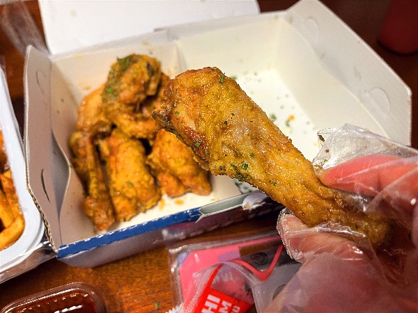 양념소스도 같이 왔는데요. 양념소스가 묽어서 일반 양념치킨의 양념과는 좀 다른 느낌이었습니다.