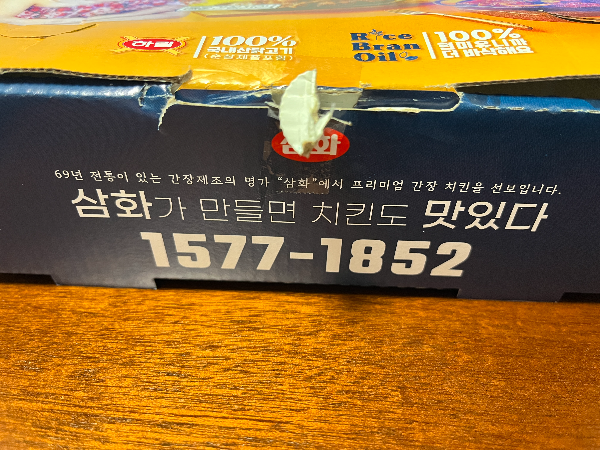 맛있다 맛있다하니까 아내 분이 말하기를 간장회사에서 만든 치킨이라고 하는 겁니다. 치킨박스를 살펴보니 간장 제조의 명가 삼화에서 만든 치킨이라고 하는데요. 요즘 기업들의 다변화가 유행처럼 번져서 치킨까지 만들게 되었나 봅니다.